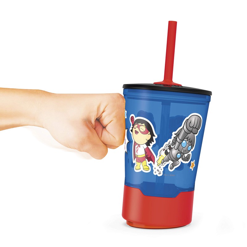 - Estilo de vida: los vasos Zak Designs hacen que la hidratación sea divertida para los fanáticos del mundo de Ryan. Este vaso Mighty Mug combina comodidad y tranquilidad para que siempre tengas agua a mano. También es totalmente reutilizable, no más vasos desechables, y una adición divertida a la rutina diaria.