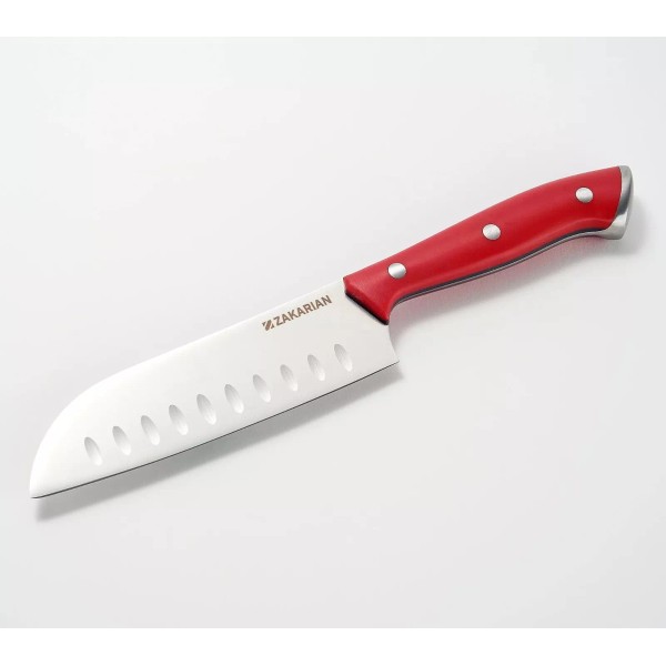 Zakarian by Dash 5" Full Tang Santoku Knife with Gift Box Meat Steel Red