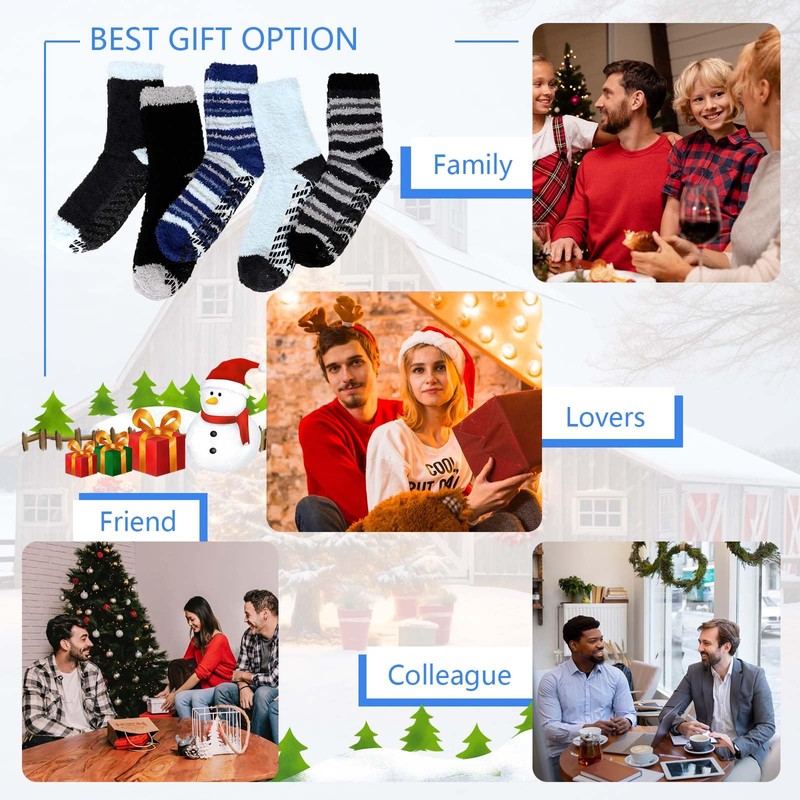 - Great Gift Option for Winter: With multiple color combinations available, these fuzzy socks are not only practical but also stylish. They make the perfect gift for Thanksgiving Day, Christmas, New Year, Valentine’s Day, or birthdays. Give the gift of warmth and comfort to family and friends with a 5-pair pack that ensures they'll stay cozy all winter long.