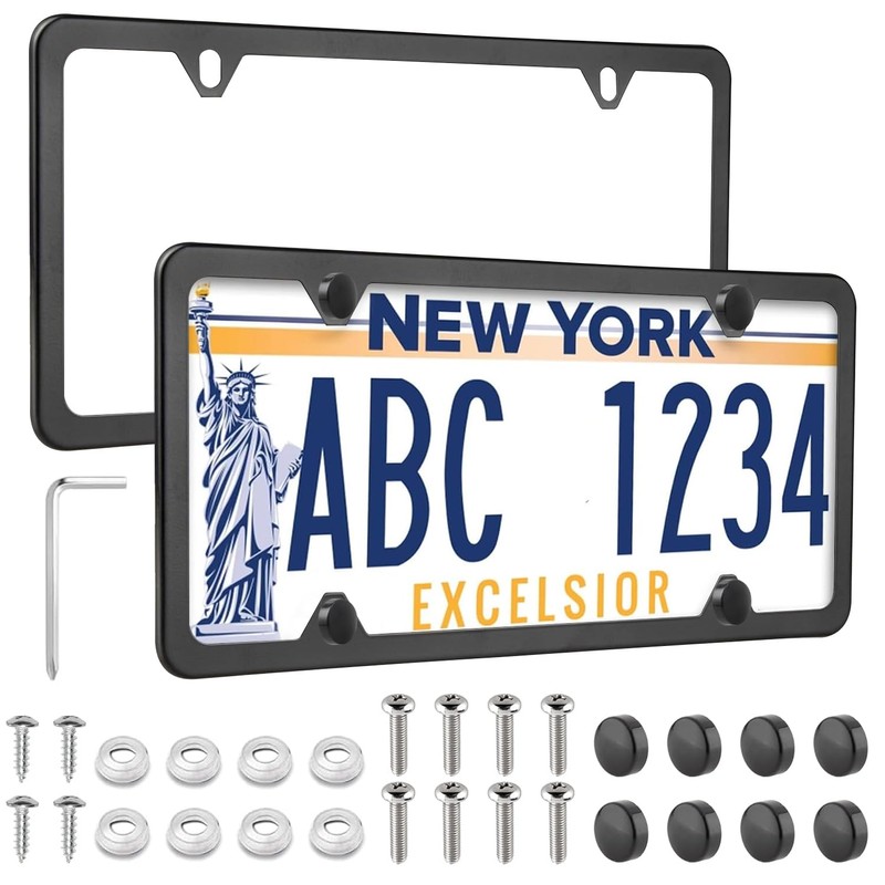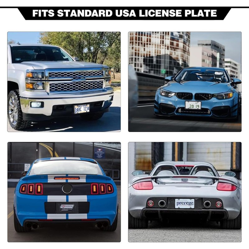 - Estándar de Belleza de La Placa de Matrícula: -- El embalaje del soporte de la placa de matrícula incluye 4 tornillos autopropulsados, 4 tornillos de máquina, 8 tuercas, 8 arandelas y 1 herramienta de instalación. Nuestro tamaño de matrícula es de 12,2 x 6,2 x 0,2 pulgadas, Que cumple con la mayoría de los estándares de tamaño de matrícula de cuatro agujeros en los Estados Unidos.