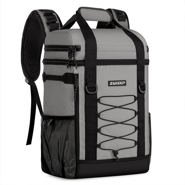 ZAKEEP Cooler Backpack, 36 Cans Multifunctional Leakproof Cooler Backpack with Padded Top Handle, Mesh Pocket for Camping BBQ (Gray)