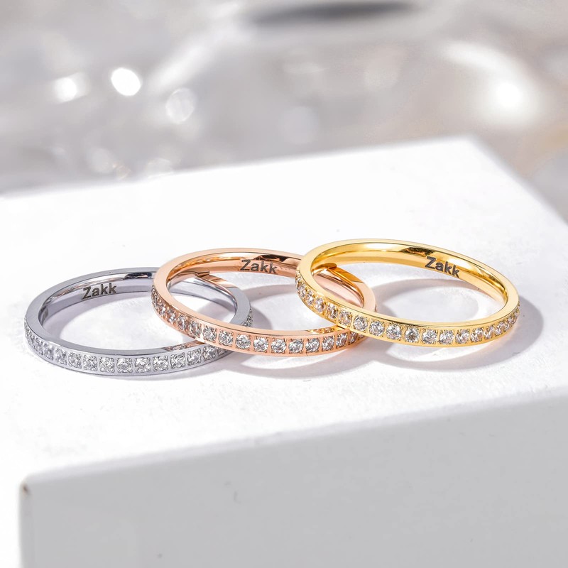Zakk Women Titanium Eternity Ring Cubic Zirconia Engagement Promise Wedding Band 2mm Comfort Fit (Gold-Full Eternity,Size H)