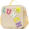 ZAKSTAR Insulated Lunch Bag for Girls - Large Reusable Preppy Lunch Box with Adjustable Shoulder Strap - Cute Smiley Design - Durable Nylon, Leakproof, Perfect for School, Travel, or Picnic (Beige)