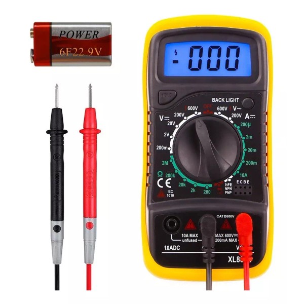 este es un multímetro compacto y práctico con función de retención de fecha, visualización de símbolo de símbolo bajo voltaje, función de luz de fondo, protección de sobrecarga y corriente de medición de encendido y apagado.