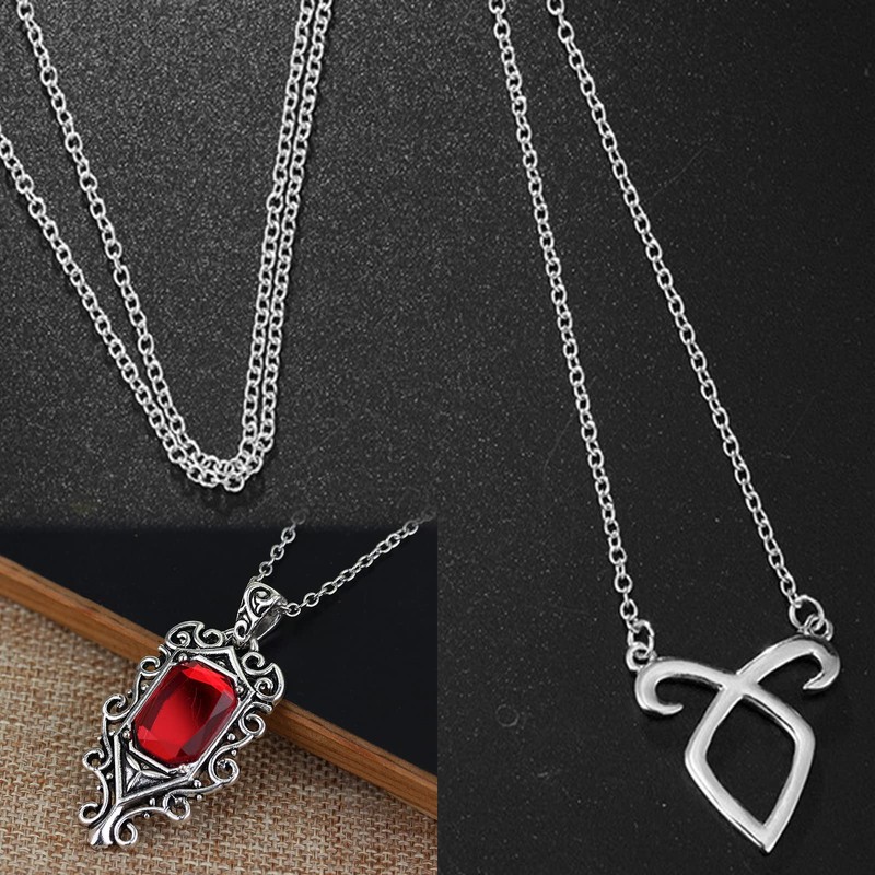 Zaky City of Bones The Mortal Instruments Inspired Angelic Power Rune Symbols Necklace Isabelle Lightwood's Electrum Whip Serpent Snake Bracelet Necklace Set of 3, Zinc, No Gemstone