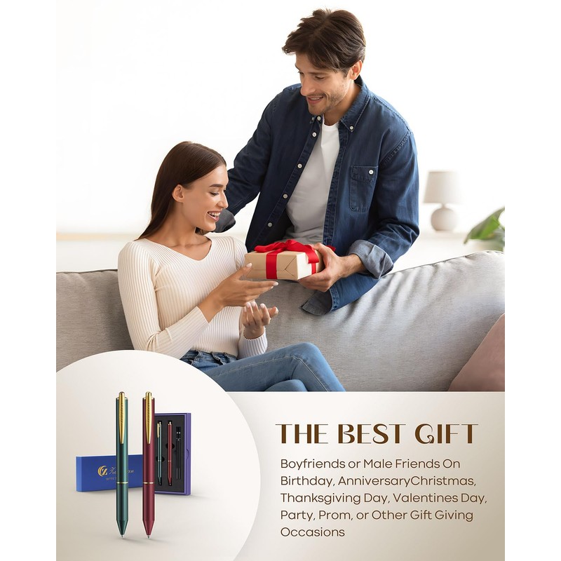 - 5.EXQUISITE GIFT SET This luxury ballpoint pen set contains two pens in an elegant gift box, making it an ideal gift for Christmas, Graduations, Father's Day, Mother's Day and Birthdays. The brass metal housing and the colour scheme in pearl sand stand for high quality and subtle luxury.