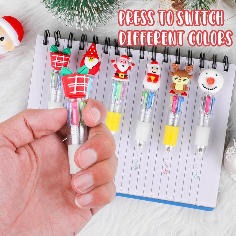 12 Pieces 4-in-1 Christmas Retractable Ballpoint Pens for Kids