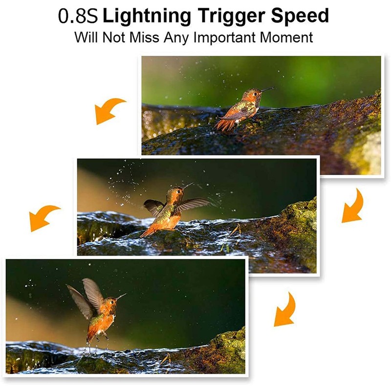 - The sensitive IR motion sensor has a maximum detection range of 49ft, the 0.8S motion sensor activation speed of the hunting camera will not miss any animals.