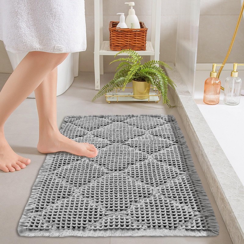 ZALL Waffle Bath Mat,Super Absorbent Non Slip Bathroom Rug,Grey 18x30inch,Geometric Diamond Machine Washable Ultra Soft Floor Mats Gray