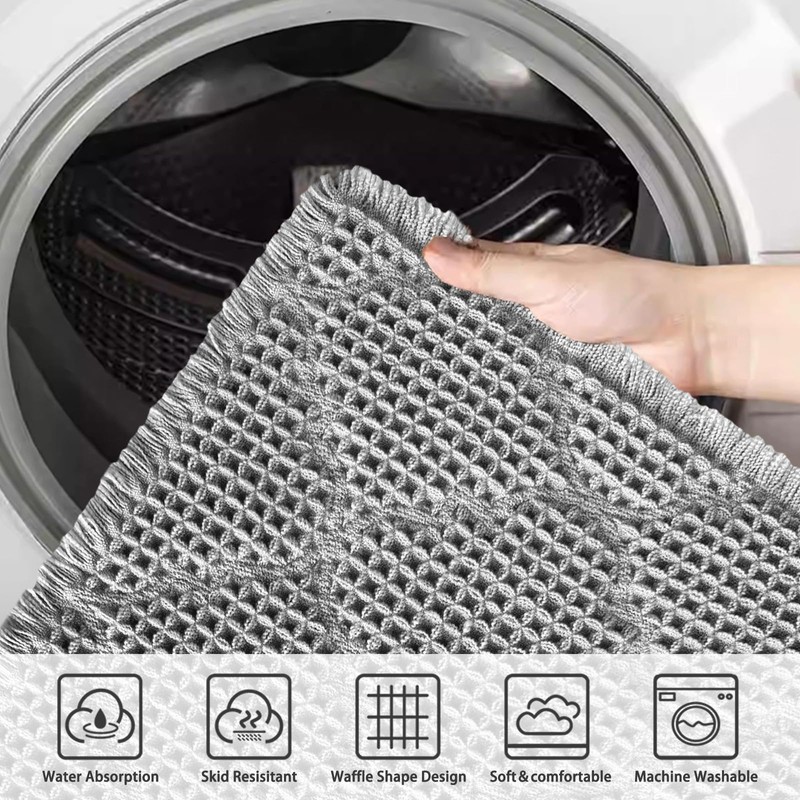 - Super absorbent: Double layer deep waffle texture, instant water absorption, more breathable. When you step out of the tub, shower, or get ready at the sink, high-density microfiber fabric can help keep your floor from dripping, keep it dry, and protect your feet from cold floors.