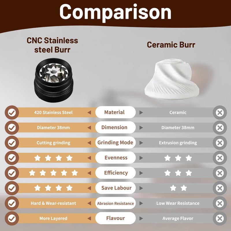 • Star Stainless Burr: Zalnuuk coffee grinder uses the special mm star stainless steel burr, the cost is about times that of a ceramic burr. Compared with the star burr, the texture is harder, the grinding speed is faster, more durable, the fine powder rate is low, and the uniformity is better