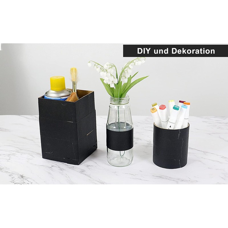 This black painting and decoration tape from ZALUJMUS is ideal for masking many surfaces for artistic projects. The 30 metre long and 5 cm wide adhesive tape adheres reliably to various materials such as paper, wood or glass. After peeling, it leaves no residue. Whether painting, varnishing or decorating furniture, this versatile tape creates clean edges and lines. The black colour is also good for fine work.