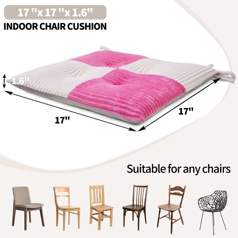 - 【Product Description】17“ x 17” x 1.6", fits most square chairs. Fabric: corduroy. Filling: high density foam. Bottom: silicone dots non-slip. Suitable for office stacking chairs, dining chairs, kitchen chairs, barstools and so on. Please measure your furniture before ordering.