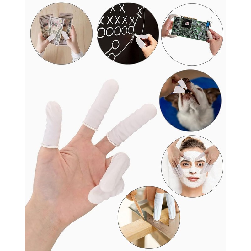 - Practical function: ideal for keeping finger bandages dry when showering or washing hands. Multifunctional rubber finger cots can be used in spray painting, cleaning, jewellery processing, microelectronics, computers, semiconductor assembly, chemical industry, hairdressing and nail salons and other industries.
