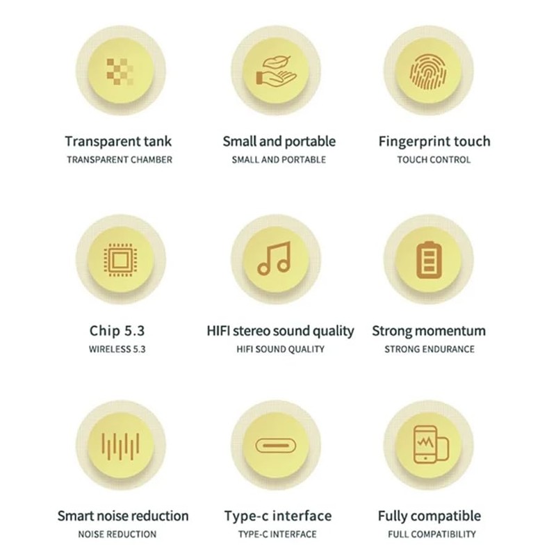 • ✅【FULL TOUCH LED SCREEN CONTROL】: Multifunctional button on both earbuds allows you pause music, answer/reject/hang up a call and activate voice notifications.
