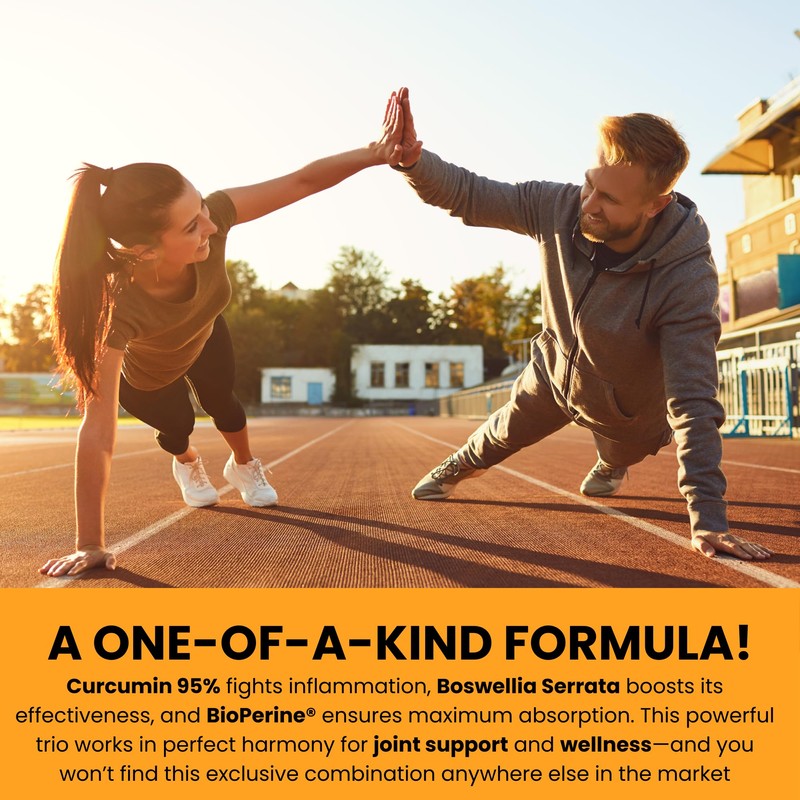 - Superior formula blend: Start the new year with powerful support for your joints! Our high-potency turmeric supplement, featuring 95% active curcumin capsules and Boswellia Serrata extract, supports optimal joint function and keeps you moving freely throughout the year. Embrace mobility and make the new year your most active yet!