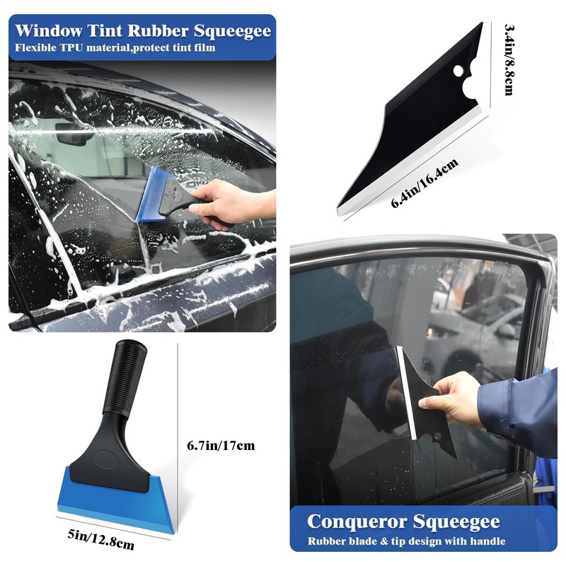 - 【Window Tint Squeegee Kit】The blue rubber tint squeegee and conqueror squeegee just need a few strokes to remove all the water drops off any flat smooth surfaces. Ideal for smooth large area window film and can clean the water very clearly.
