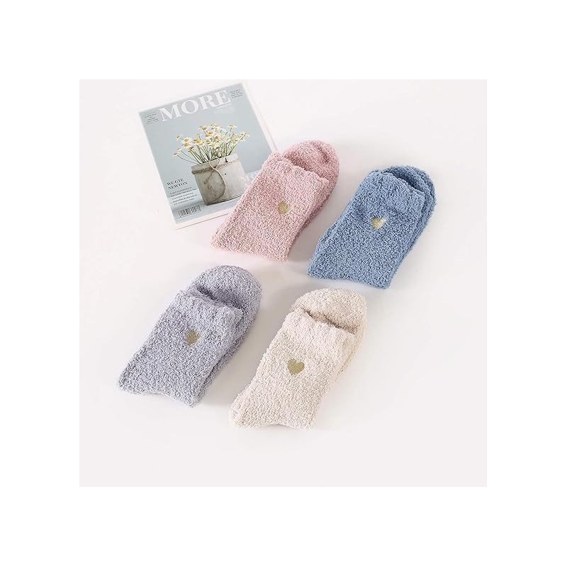 Zando Fluffy Socks Womens Ladies Socks Bed Socks For Women Warm Socks Women Womens Socks & Tights Womens Fluffy Socks, 4 Pairs Slouch Socks Cosy Socks Fuzzy Socks Cute Socks Four Colours 2-2 One Size