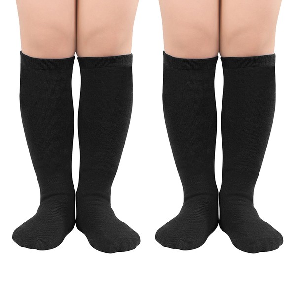 Zando Toddler Soccer Socks Black Knee High Socks for Girls Cotton Long Black Socks Boys Dress Socks Youth Athletic Tube Socks School Uniform Socks 3-6 Years Black 2