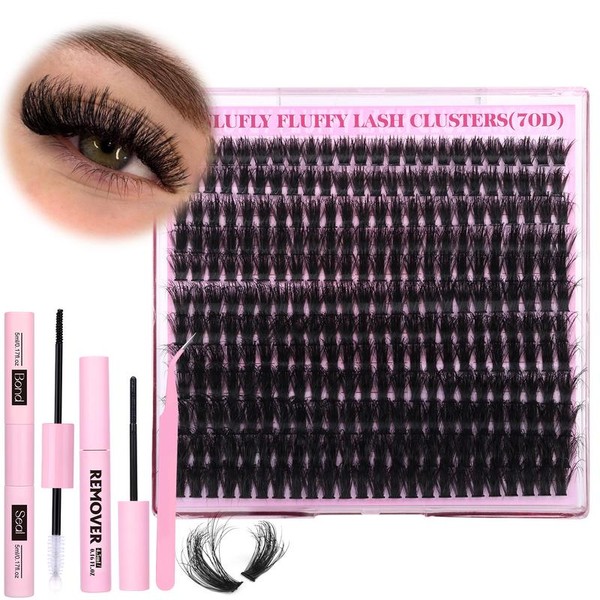 zanlufly Lash Clusters KIt D Curl Lash Extension Kit Volume Thick Eyelash Extension Kit Fluffy Individual Lashes Kit#springtok:_70D Clusters Kit
