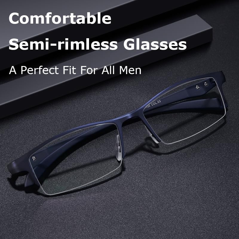ZanyLen Blue Blocker Glasses for Men Semi Rimless Rectangular Computer Glasses Blue Light Anti Glare UV Gaming Eyeglasses (Trendy Blue Metal Eyeglasses)