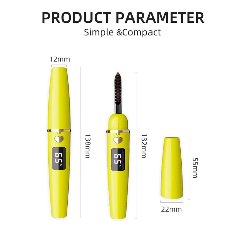 - COMPACT AND PORTABLE-This electric eyelash curler with compact design, it fits neatly into your makeup case, gym bag or purse for quick touch-ups and for travel.