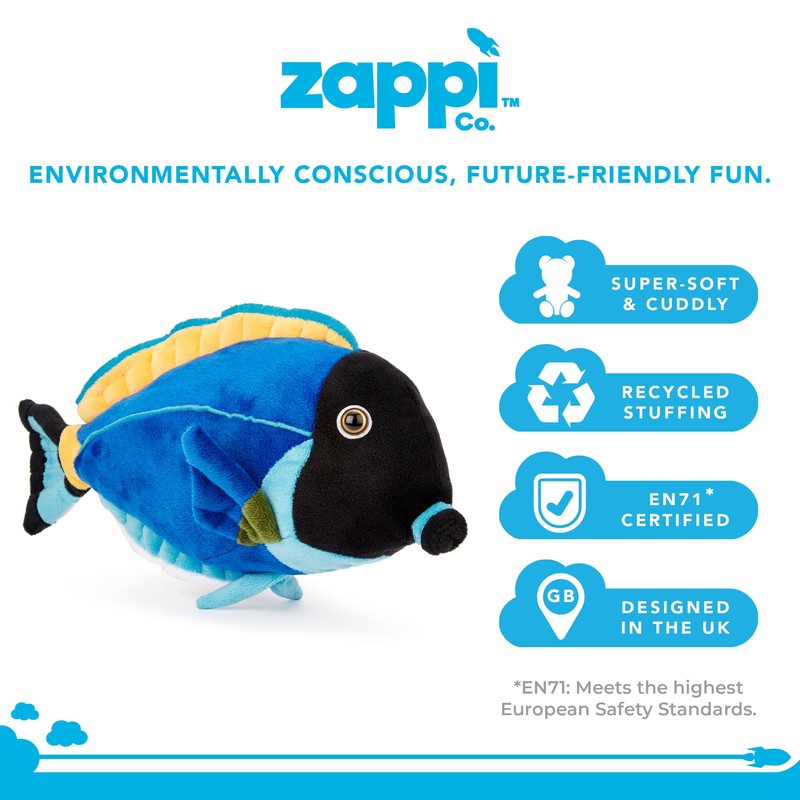 Zappi Co Plush Children's Stuffed Soft Cuddly Plush Toy-Part of Safari Animals Collection, Perfect for Kids (31cm Depth)(Powder Blue Surgeonfish)