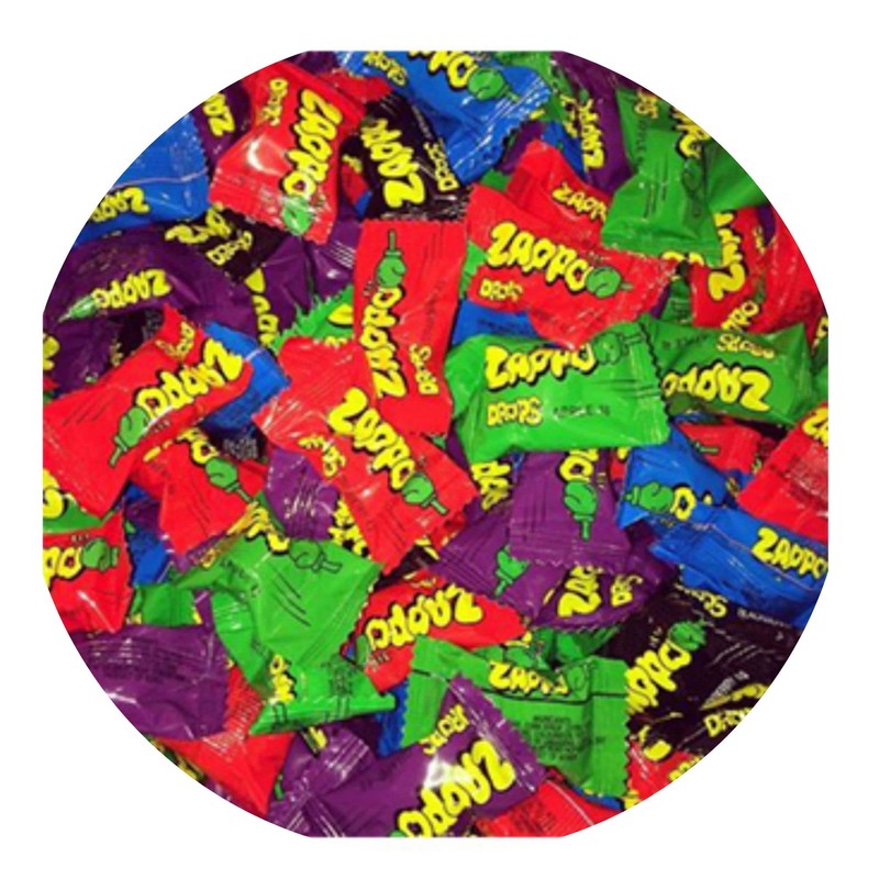 - CANDY PARTY FAVOURS – Wrapped Zappo Drops with their colourful wrapping is a great way to add a rainbow of colours to your candy buffet table by filling your lolly jars with these great tasting sour lollies. Why not drop some of these colourful drops into your party lolly favour bags, boxes.