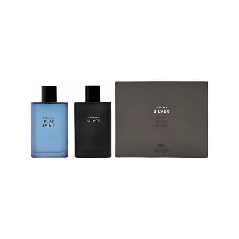 Zara Man Silver + Blue Spirit Cologne for Men Fragrance Set EDT Eau De Toilette 2x 90 ML (3.04 FL OZ)