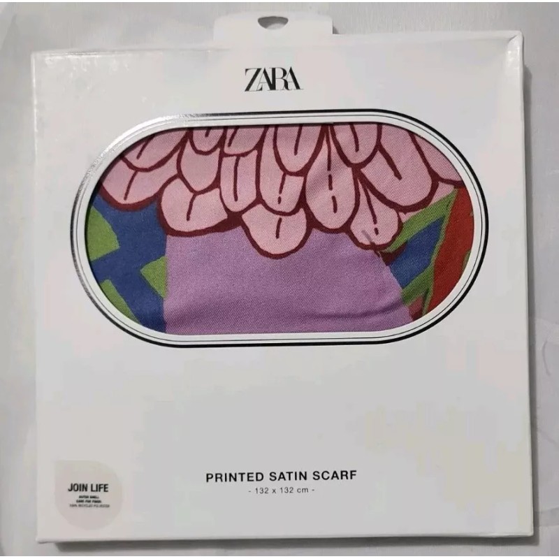NEW ZARA MULTICOLOR PRINTED SATIN EFFECT HANDKERCHIEF 27" X 27" 0653 030