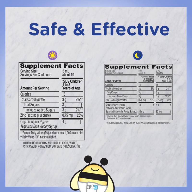 Zarbee's Baby Daytime & Nighttime Cough Syrup + Immune with Organic Agave + Zinc, Daytime Cough Syrup, Grape, & Nighttime Cough Syrup with Chamomile, Agave Taste, Two Pack, 2 x 2 fl. oz