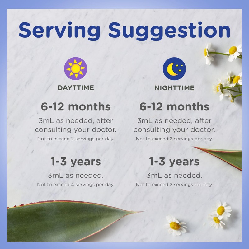 - 6-12 months, take 3 mLs as needed after consulting a doctor, do not exceed 2 servings per day