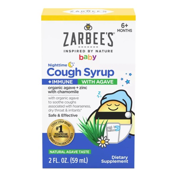 Jarabe para la tos nocturna y refuerzo inmunológico de Zarbee's Baby con sabor a agave natural para bebés de 6 meses en adelante