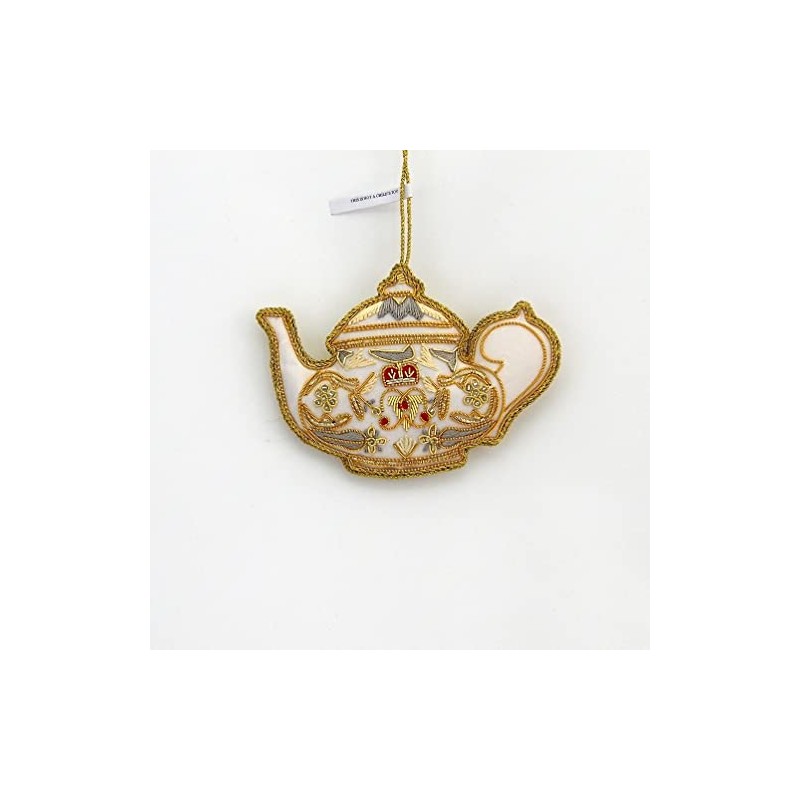 Zardozi Embroidery - White Teapot with Gold Leatherette Back - Christmas Orna...