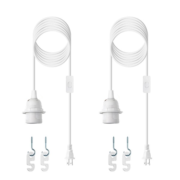 - DIY Hanging Light Kit: Our lamp cord comes with 4 ceiling hooks, 4 cord hooks, and 2 sturdy threaded socket rings, allowing you to easily secure a lampshade to the socket or create a DIY pendant light in areas that require additional brightness or lack traditional wiring.The light cord is also ideal for use with plant grow lights