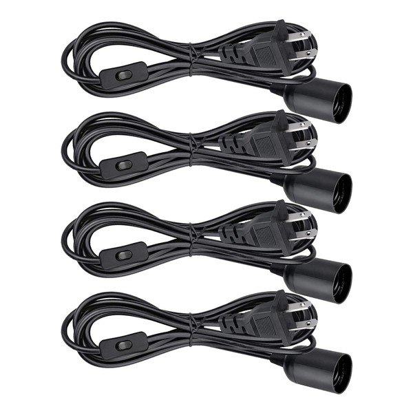 Zarnicy Plug in Light Socket - Pendant Hanging Lantern Cord - 8.2Ft Lamp Cord with Switch E26/E27 Extension Cable, Black Light Bulb Socket,4 Pack