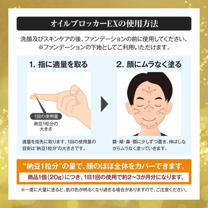 - Zascosmetic: A little amount prevents glare. Stretching the amount of natto to and apply it for 2 to 3 months. Face Sweat Prevention Cream