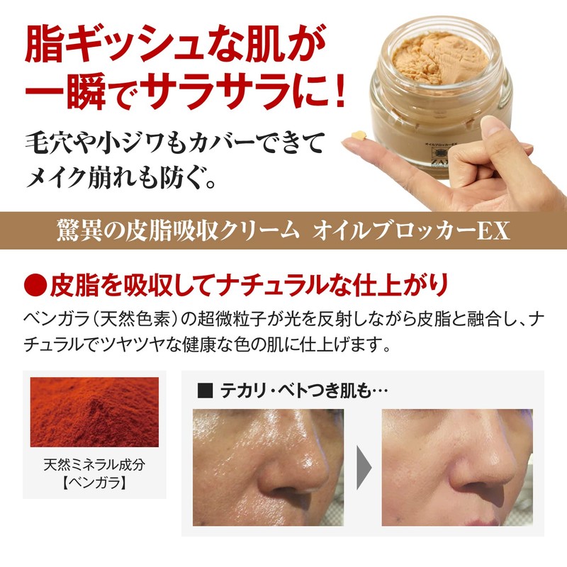 ザスコスメティック ザス ZAS オイルブロッカーEX 20g 皮脂吸収クリーム テカリ防止 皮脂 崩れ 汗 抑える 毛穴 小じわ 隠し 化粧下地 ファンデーション メンズメイク メンズコスメ 男性化粧品 メンズ 化粧品 うすだいだい 無香料