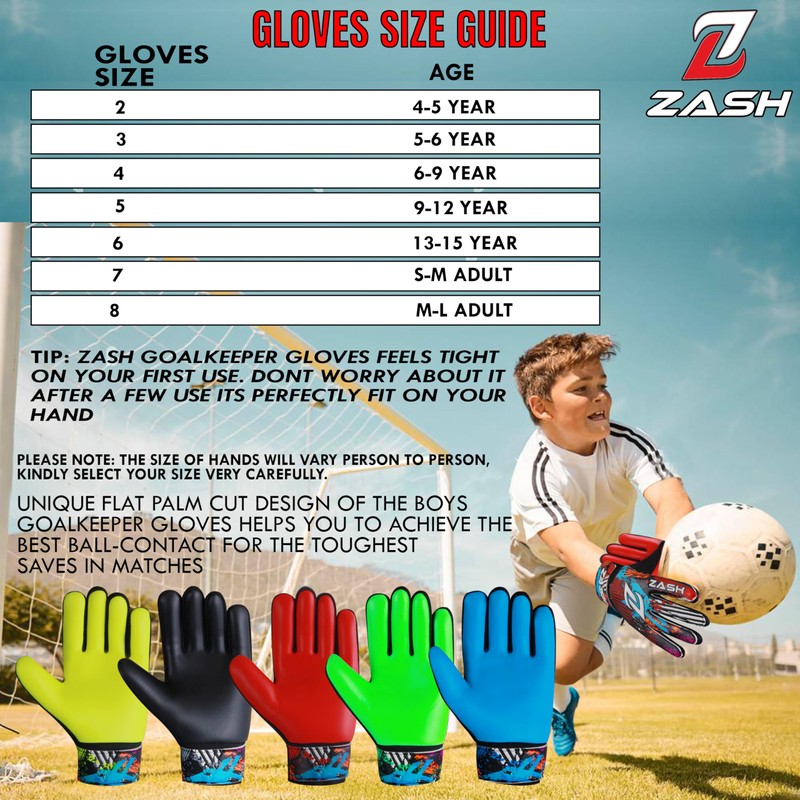 #Package Included: 1 x Pair ZASH kids goalie gloves soccer pair for kids, Adults ,Boys & youth