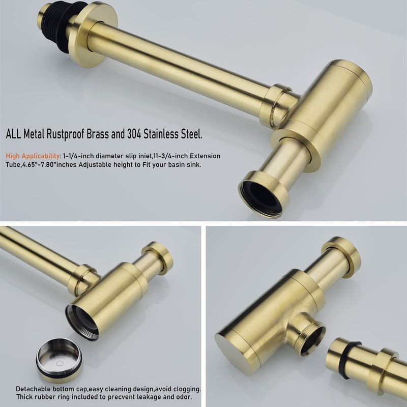 • ★Versatile and Adjustable: Our gold P-trap fits any 1-1/4 inch drain component with a standard 1-1/4 inch connection to basin waste. Adjustable height from 4.6 to 7.8 inches to fit your sink's standard drainage setup.