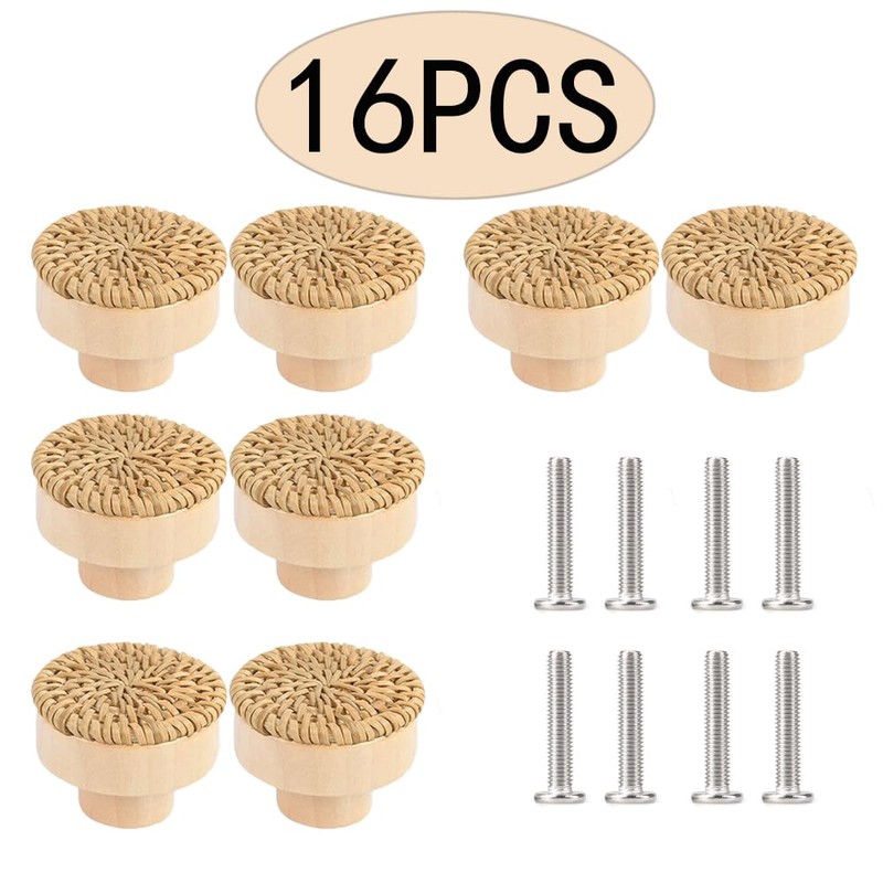 - ✔️✔️✔️【Handmade Rattan Design】The cabinet knobs wood are decorated with original rattan pieces, hand-woven rattan pieces, which can give the handles a sense of design, and decorate the cabinet or wardrobe with natural beauty.