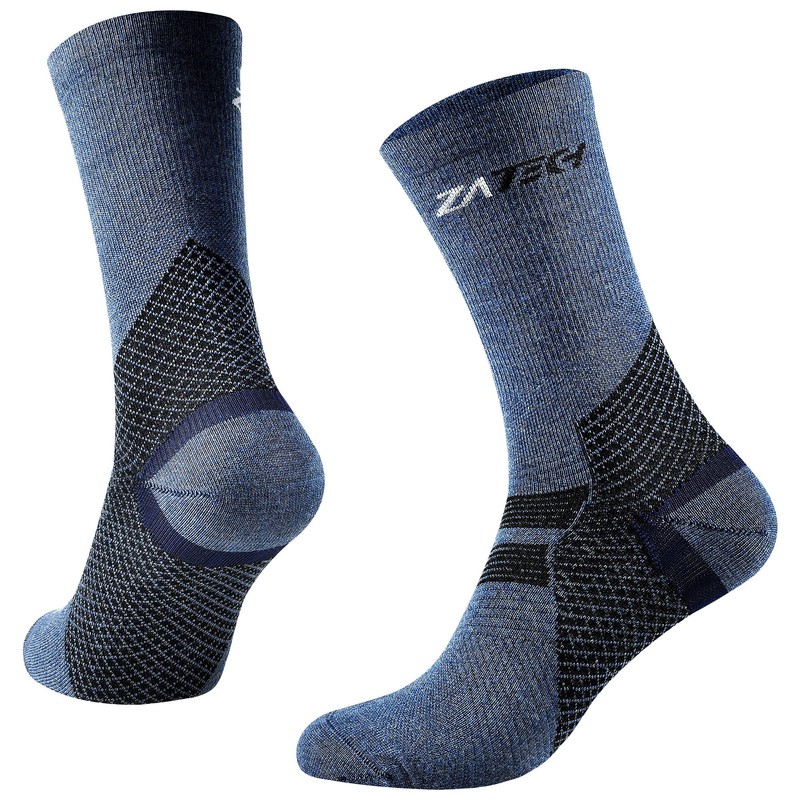 ZaTech Merino Plantar Fasciitis Socks Lightweight Micro Crew Compression Socks, Denim blue/black