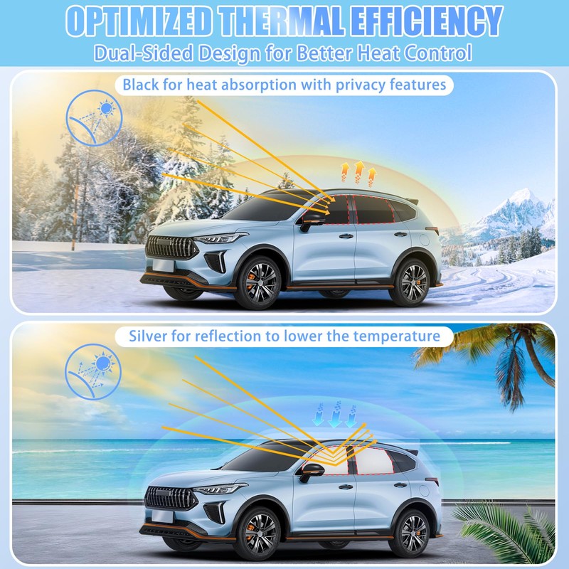 【Black Side for Heat Absorption & Privacy】 With 2 colors to choose from and both sides can be used as external and internal use, our black out sun shade for side window offers versatility for every season. The black side absorbs heat, making it perfect for winter use while providing privacy