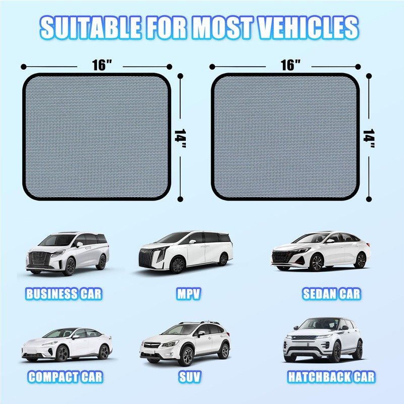 - Convenient Storage & Expandable Modules: These car window screens are lightweight, slim, and portable, making them perfect for travel, road trips, and everyday use. Also, the versatile rectangle design allows for quick stacking, and multiple rectangles create the perfect fit when customers need a larger area for sun protection and anti-glare