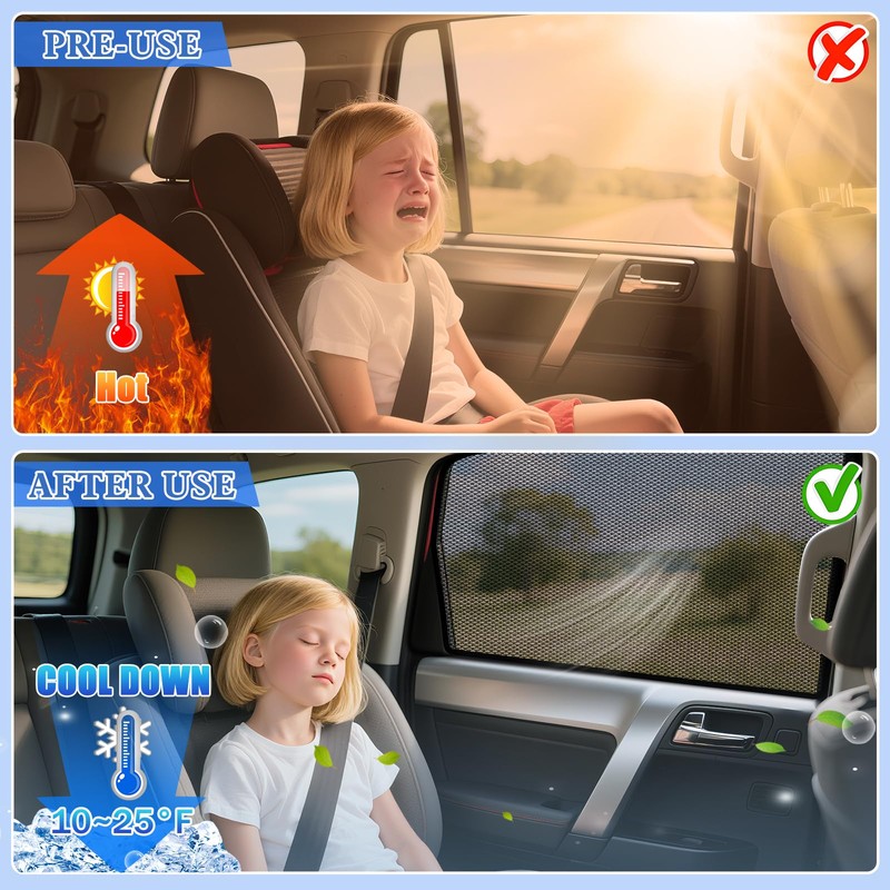 - 99% UV & Glare Blocking for Rear Comfort:Car window shade for Honda CRV blocks 99% of harmful UV rays and reduces glare, protecting rear-seat passengers (especially babies and pets) and preventing interior fading. Keeps your backseat area cooler even in direct sunlight—ideal for napping, camping, or road trips