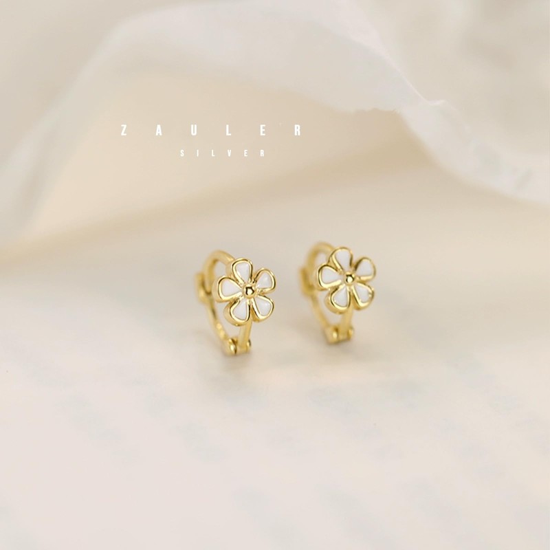 ZAULER Solid 925 Sterling Silver Flower Hoop Earrings Huggie for Women Daisy Hoop Earrings Cartilage Helix Earrings