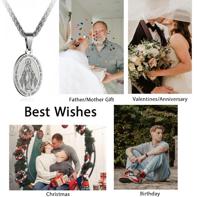 ZAULER Stainless Steel Saint Virgin Mary Medal Necklace for Men Women 24 In Religious gifts