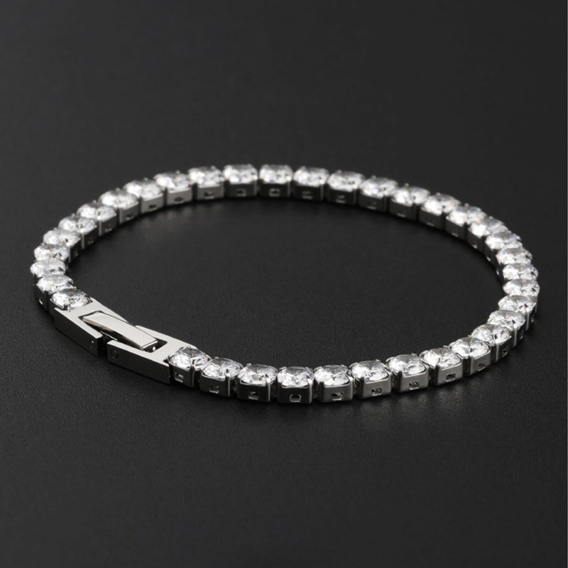 - DESIGN: This 17cm tennis bracelet features round 2.5mm quality cubic zirconia stones in four-prong basket settings ensure a long-lasting and brilliant finish, less prone to falling off, and the chain less prone to breakage, making them more sturdy