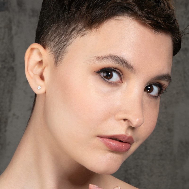 - Solitaire ear studs for women with a minimal metal frame with sparkling 4 mm white AAA CZ stones