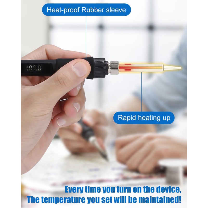 - LED soldering iron and heat-resistant handle: the soldering iron uses a high-resolution LED screen display to show the temperature status more clearly. The heat-resistant handle can effectively isolate the temperature and is more suitable for long-term welding and maintenance work.